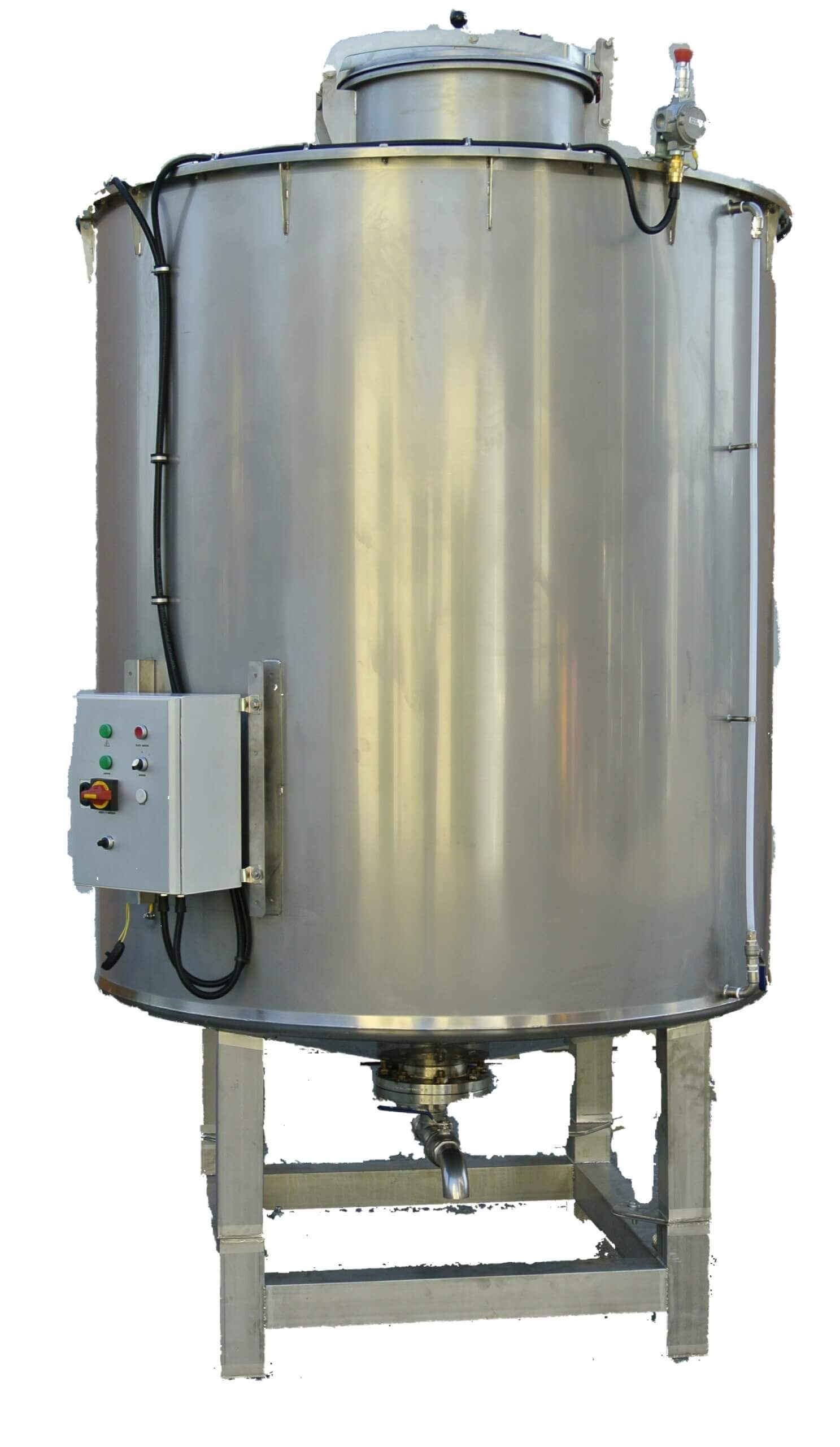 Our heating and mixing tanks are provided with heating at low (40°C – 90°C) or medium (40°C –185°C) temperatures.  The tanks are equipped with an mixer/agitator which keeps the liquid in constant movement, with variable or fixed speeds to suit your requirements.